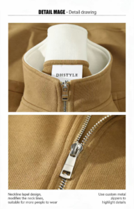 380g Retro Cotton Drop Shoulder Contrast Half-Zip Stand Collar