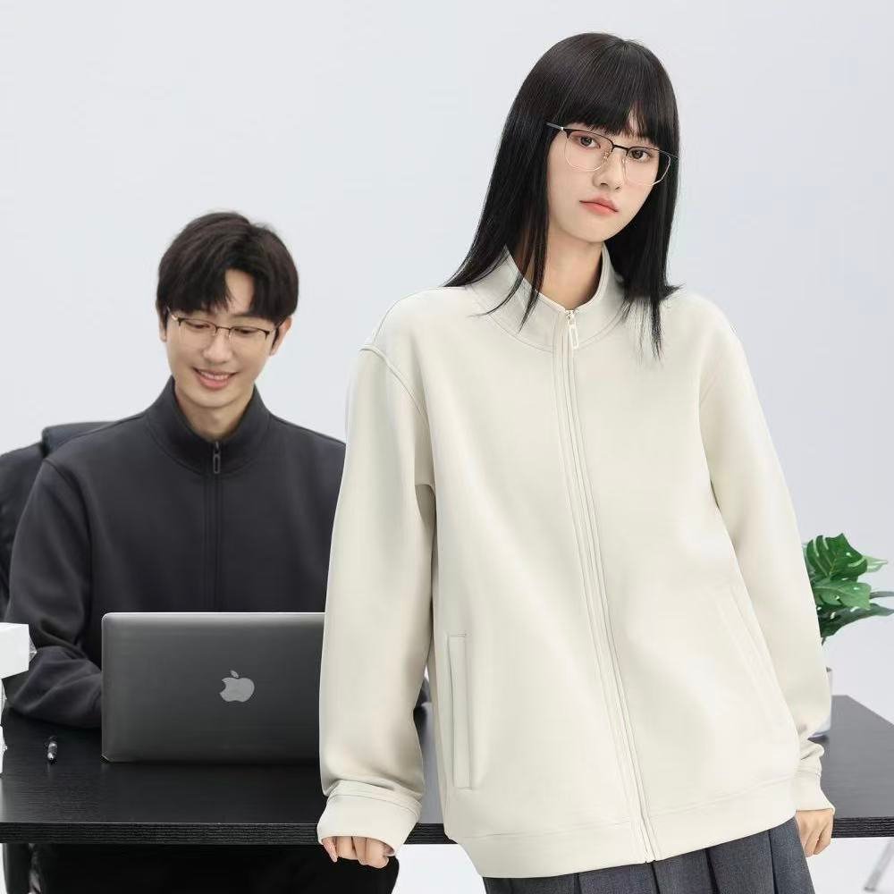 400g Liquid Cotton Stand Collar Zip-Up Jacket